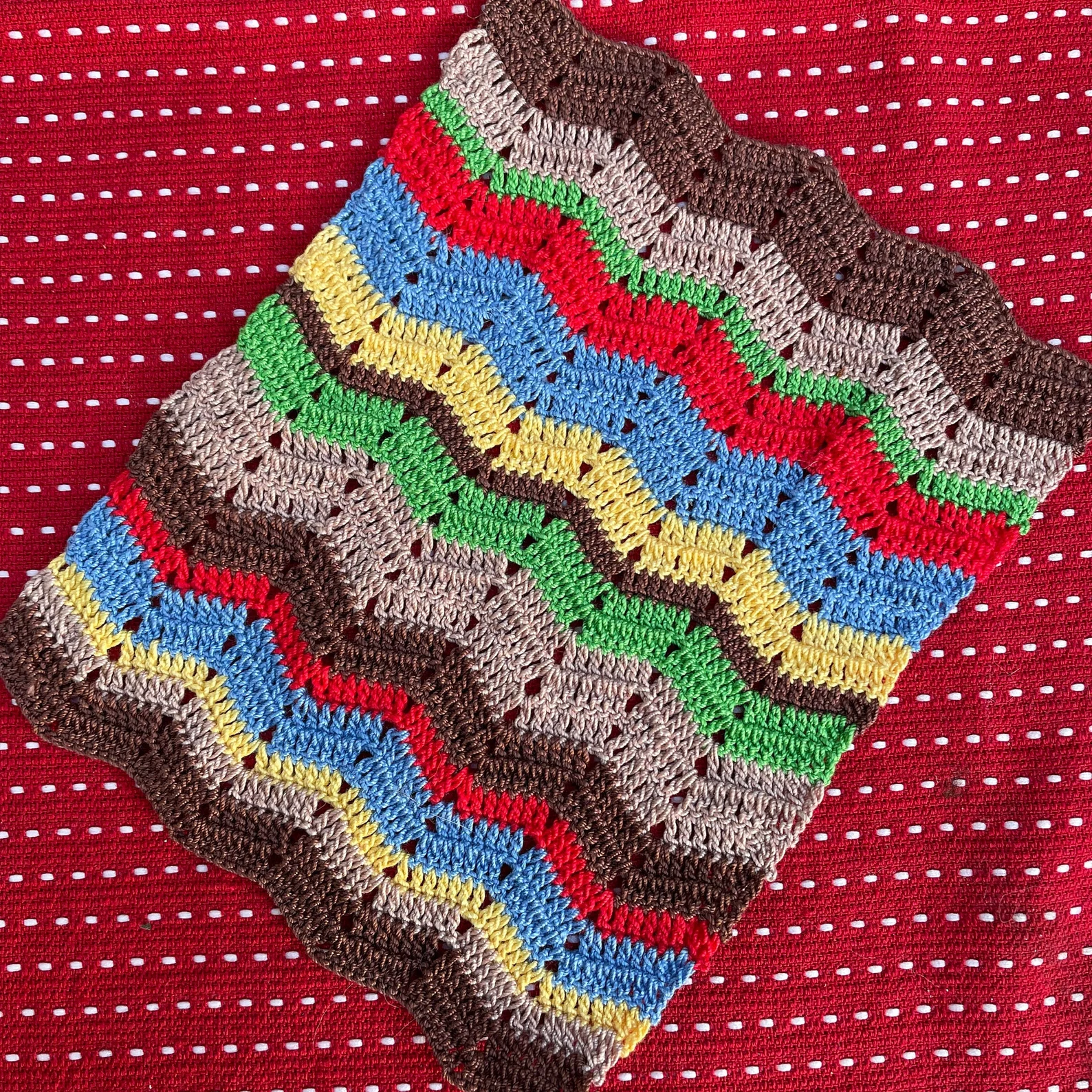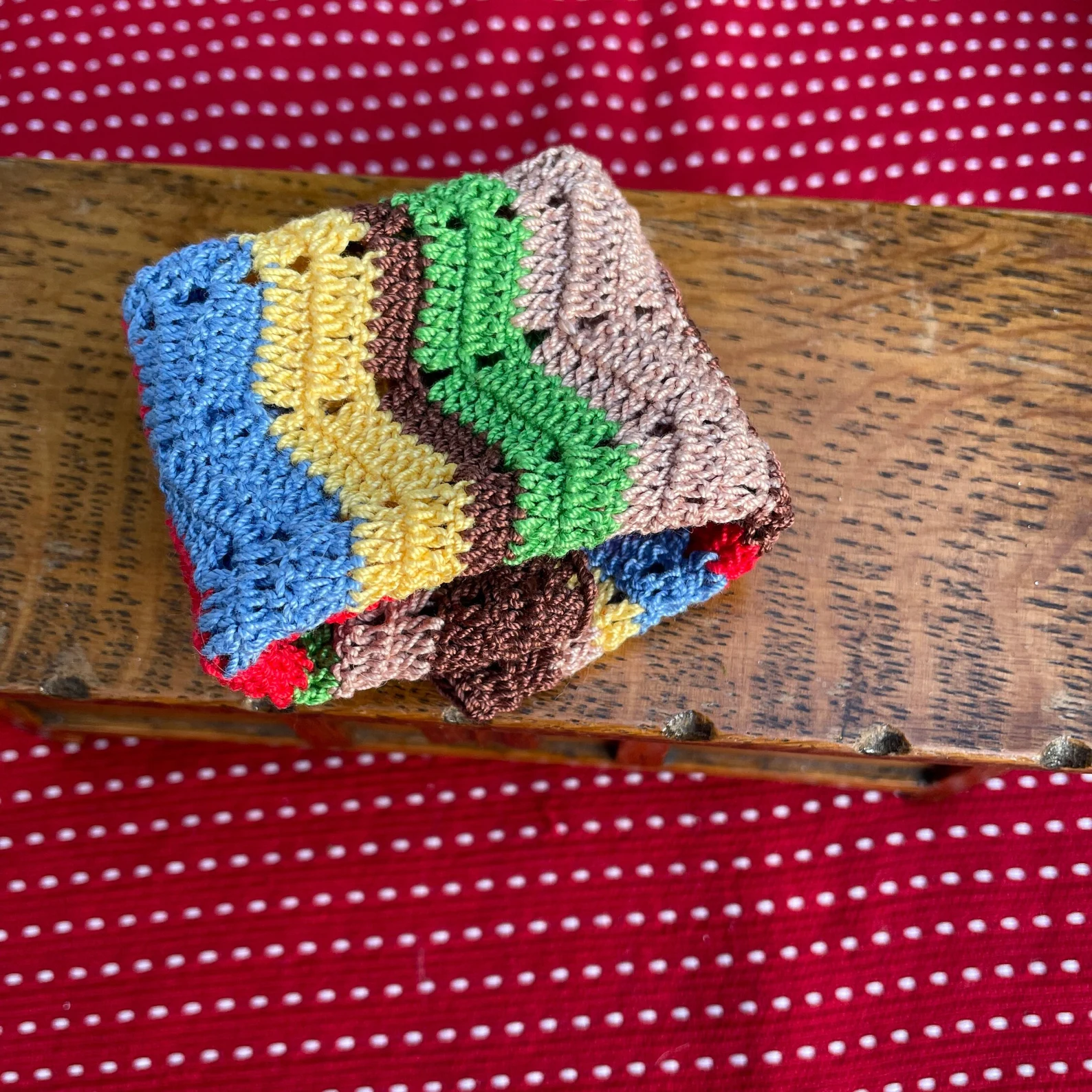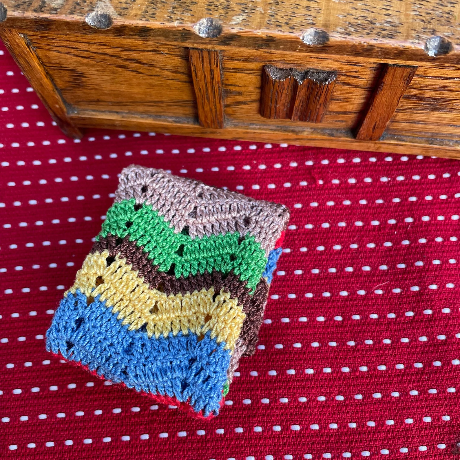 Handmade dollhouse miniature blanket with lovely colours and hearts.